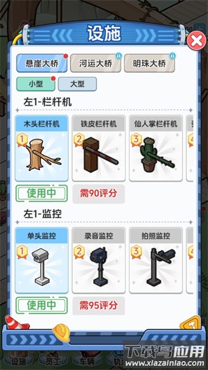 2、点击下方的设施按钮可以解锁和升级桥梁上的设施。