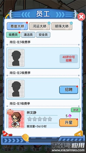 3、点击员工可以招募不同的员工来进行管理。