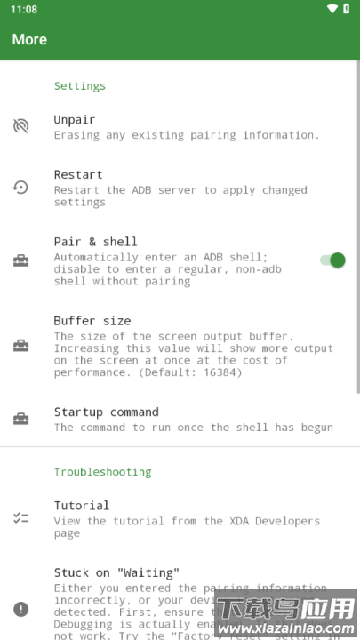 2、启动连接:打开应用会自动建立本地ADB会话;
