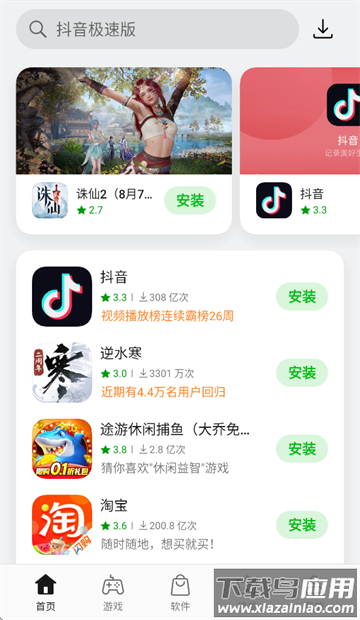 安装后打开应用商店,在首页可以看到推荐内容;游戏和软件板块按分类展示;榜单则显示当前热门应用。需要特定应用时,可直接在顶部搜索框输入名称查找。