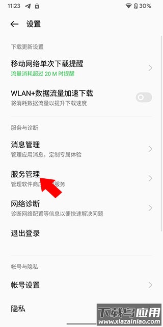 2. 选择服务管理选项;