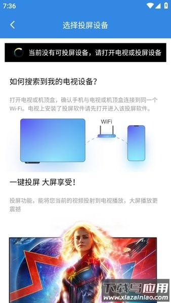 打开软件后直接搜索想看的影片;在播放页面点击右上角TV图标;系统会自动扫描同WiFi下的设备;选择电视名称即可开始投屏;投屏过程中手机可正常使用其他功能。