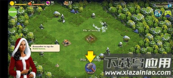 2、跟随新手引导在木堆旁建造初始建筑;