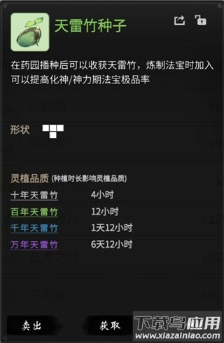 所有种子均可在坊市购买,其中天雷竹种子最为珍贵。种植获得的万年天雷竹能提升装备锻造品质,天机阁售价150机缘,建议优先囤积。