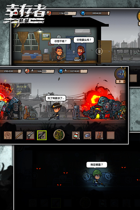 幸存者危城官方正版是一款以丧尸末日为背景的横版Roguelike生存手游,采用Unity引擎打造流畅动作体验。游戏将沙盒建造、资源收集与策略战斗相结合,玩家需要在随机生成的危机四伏的城市中搜集武器材料、制作生存道具,同时应对特性各异的僵尸威胁。三系可选角色搭配自由组合的装备系统,配合动态天色变化与体力饥饿度等真实生存指标,带来极具挑战性的末日求生体验。游戏创新性地简化了操作系统,通过走位技巧与武器搭配即可享受爽快战斗,喜欢硬核生存挑战的玩家快来下载鸟进行下载安装。