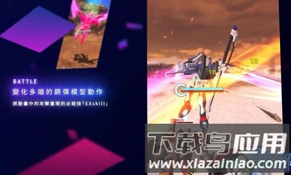 使用自己组装的高达模型投身战场;通过直觉式的触控操作,施展绚丽招式展开战斗。游戏也配备了自动战斗功能,适应手机玩家的多样化需求。