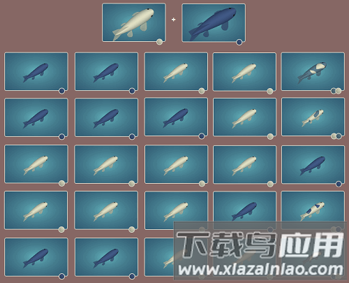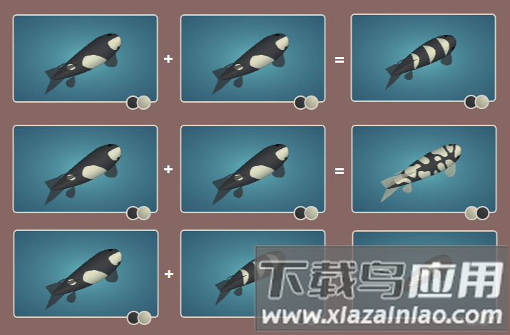混合两条双色鱼:若鱼主色相同、辅色不同,将产出三色鱼,并保留主色。唯一限制是图案可能阻断添加色,因此仅选纯色与斑点鱼。