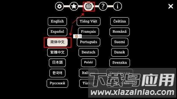 选择第三个地球图标,在语言列表中切换为中文即可。