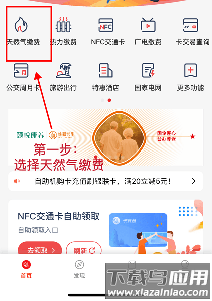 第一步:在首页点击“天然气缴费”入口;