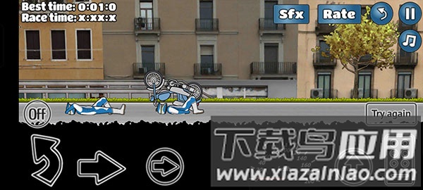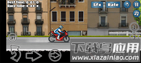 游戏玩法简单却极具挑战性。玩家需操控摩托车在多样赛道上保持前轮翘起行驶,一旦前轮触地即告失败。赛道中遍布各类障碍,既是阻碍也是得分机会。通过腾空、翻转等特技动作跨越障碍,动作越复杂得分越高。每关设星级评分,达成条件可解锁新赛道与车型。