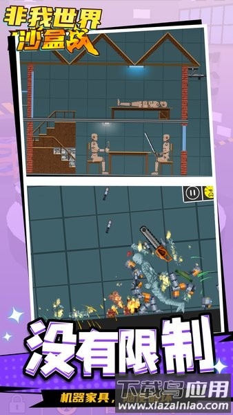 在游戏中你可以使用各类道具与小人、动物展开互动,包括撕裂、射击、燃烧、下毒等多种手段,走出属于自己的沙盒大战路线,创造出一个充满惊喜的世界。