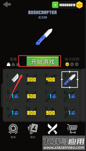 2、进入武器库挑选喜欢的飞刀款式,不同刀具具备独特飞行特性与视觉风格;