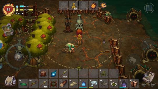 野猪与蘑菇人需谨慎应对,初期避免正面冲突。可利用围墙与门卡位引导互斗,收集魂体与蘑菇帽。游戏每70天为一个循环,包含20天正常期、15天石化期、20天正常期与15天烈焰期。石化期需提前准备石镐与心脏,烈焰期则需布置灭火器保护重点区域。