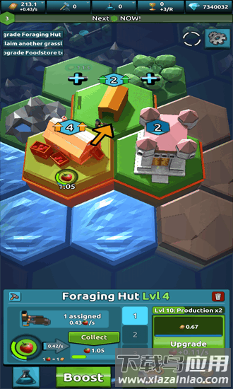3. 可使用道具加速生产与建造进程,扩展领土边界,带领子民不断提升生活水平。