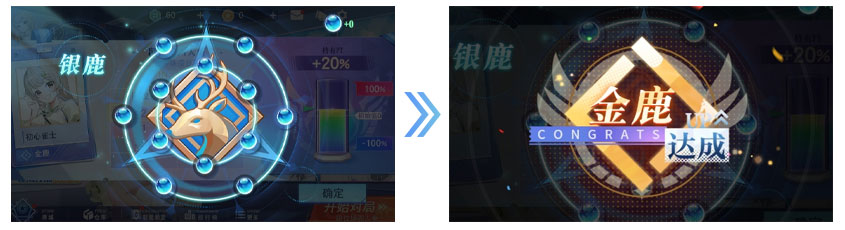 ※新段位分为鹿、狼、虎、狮、龙五阶,每阶设赤、青、银、金四个小段,龙段与凤凰位拥有专属炫斗珠颜色。