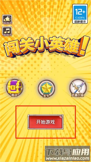 1、启动游戏后,首先点击主界面中央的“开始”按钮进入场景;