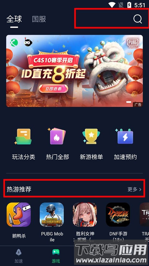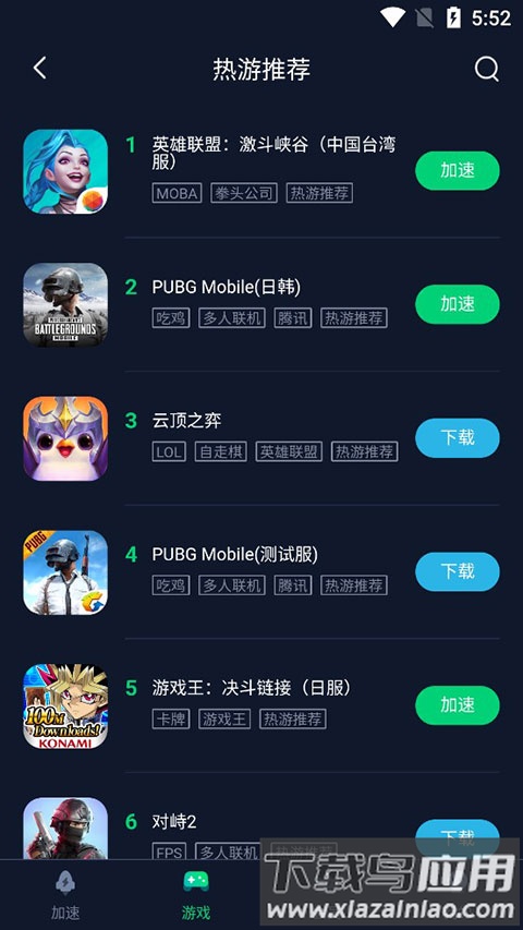 2. 选择游戏后点击下载或加速;