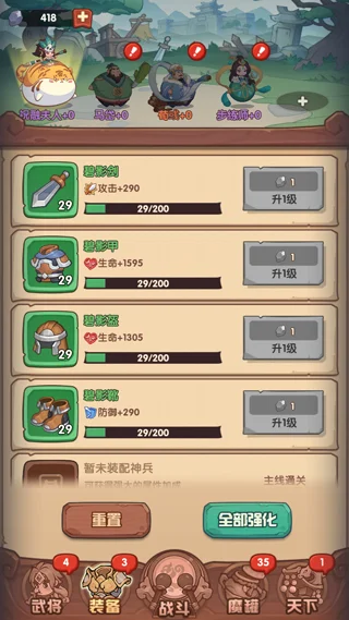 2、游戏采用自动作战机制,玩家主要进行阵容布置;