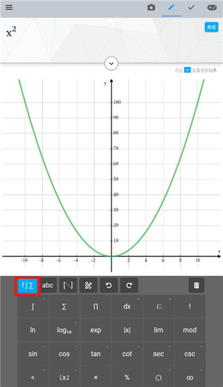5、当输入x的平方表达式时,系统还支持自动绘制对应的二次函数图像。