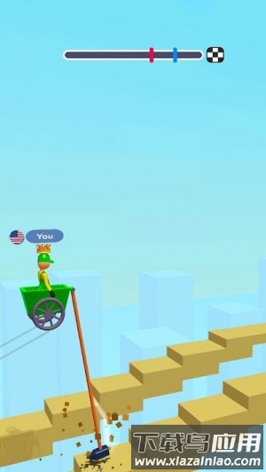 1、锤子操控机制,点击屏幕挥动锤子产生反作用力,推动角色移动;需要精确控制力度和角度,避免失控坠落。