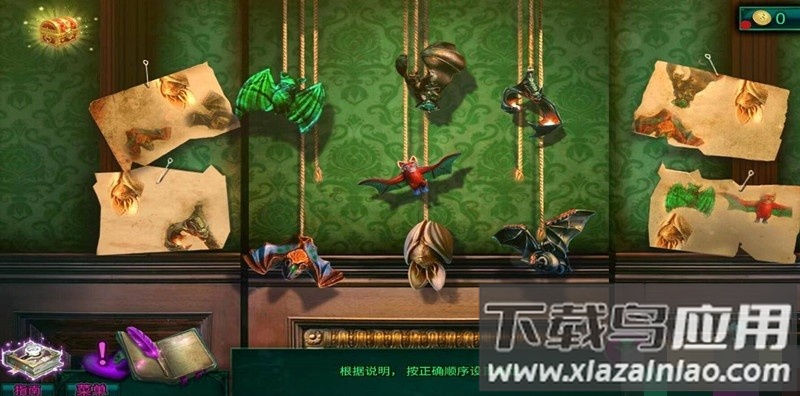 1 蝙蝠关卡初始布局如图,需参照旁边四张图案确定正确顺序。