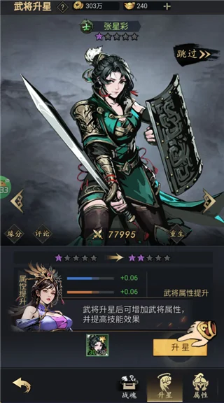 4、武将重复获取时,碎片可用于升星突破;