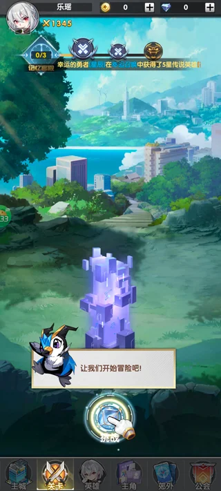 1、下载并打开游戏,完成账号注册登录后,点击开始冒险按钮;