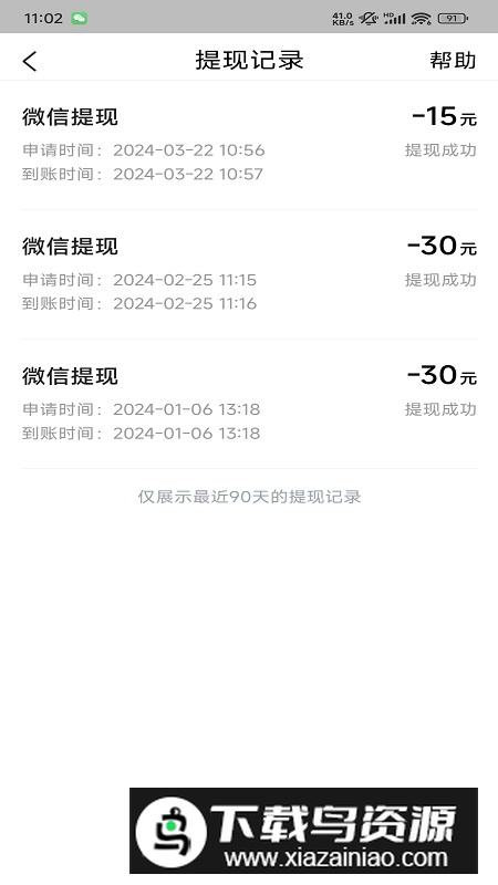 5、例如选择“微信提现”,挑选适合的金额提交,成功后可在提现记录中查看详情。