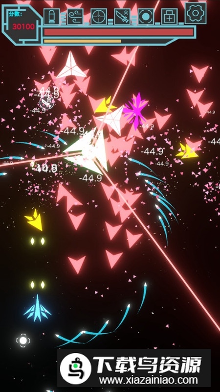 2.在霓虹闪烁的深空场景中穿梭,感受高速飞行与密集弹幕带来的视觉冲击;