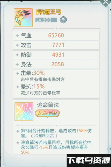 武器推荐:[帝]霸王弓:击晕概率提升30%;