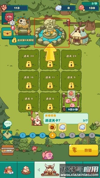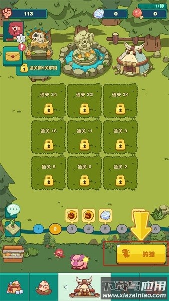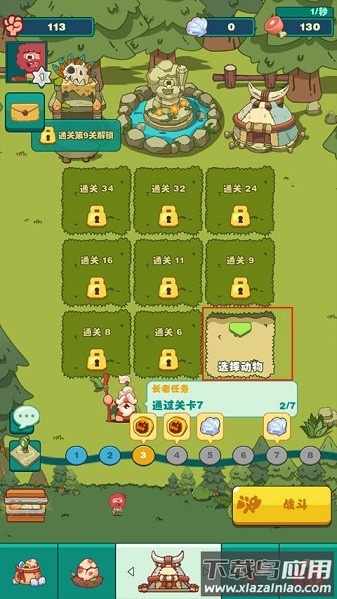 (1)动物通过战斗狩猎获取,通关相应关卡即可解锁不同类型,点击选择动物;