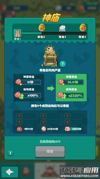 (1)通过奉献动物提升神庙等级,增加所有动物的产量;