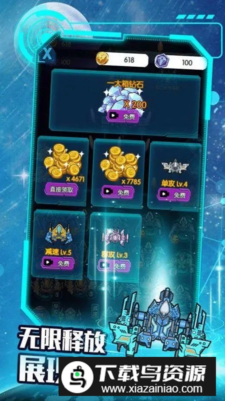 1.自定义战机:通过战斗收益强化战机装甲、引擎与火力系统,打造属于你的王牌座驾;