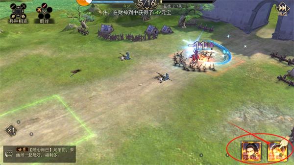 2、拖动角色选择上阵,布阵完成后点击挑战进入战斗界面。