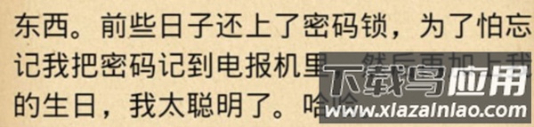 6、操作“电报机”根据“笔记”中的摩斯密码得到电报371,结合生日得出密码371+314=685,输入后打开“大铁箱”;