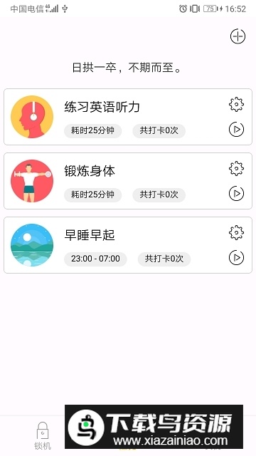 3.操作简单直观,左滑即可删除任务,一键进入锁机状态;