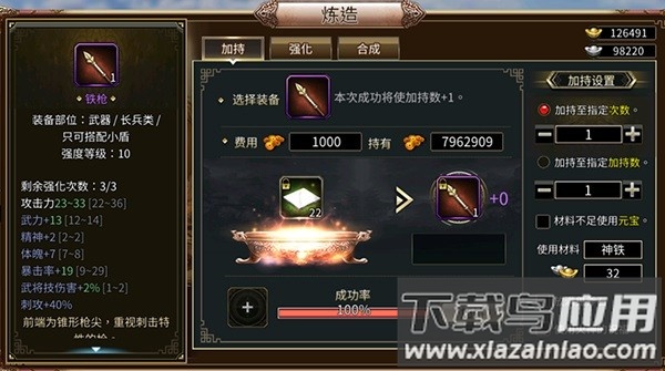 1、游戏内每件装备均可进行炼造,通过加持、强化与合成提升武器属性,增强输出能力。
