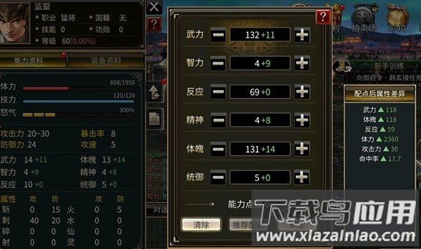 2、武将升级后获得属性点,玩家可自由分配或使用推荐加点方案,快速完成属性配置。