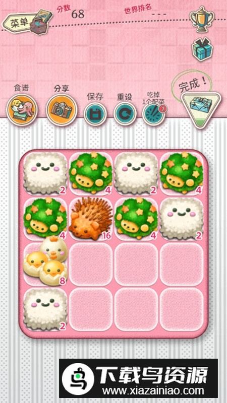 2.当相同数字的食材碰撞时,它们会进化成双倍数值的新食材;