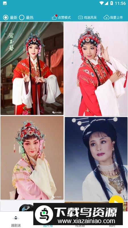 2. 提供海量高清越剧美图,包括剧照、写真及生活照,可点赞支持心仪演员,与戏迷共同欣赏;