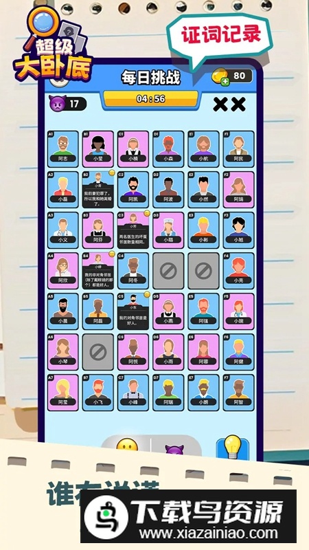 在超级大卧底手游官方最新版中,你将扮演一名心思缜密的侦探,置身于一个个扑朔迷离的案件现场;每个关卡都暗藏独特的线索与复杂的人际关系,需要你运用强大的逻辑推理能力,从众多嫌疑人中识破谎言、揪出真凶,最终拯救无辜的受害者;这款融合智力挑战与剧情解谜的游戏,将带你深入一场场关于爱与背叛的较量,喜欢的玩家就在本站下载。