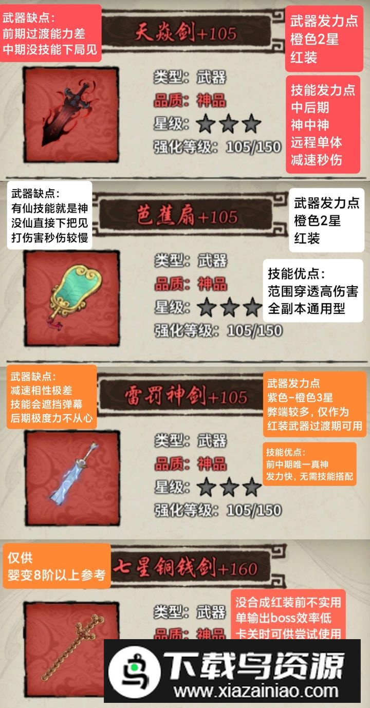 当前版本主流武器为天焱剑,若抽到雷罚神剑可作过渡使用直至橙3阶段;