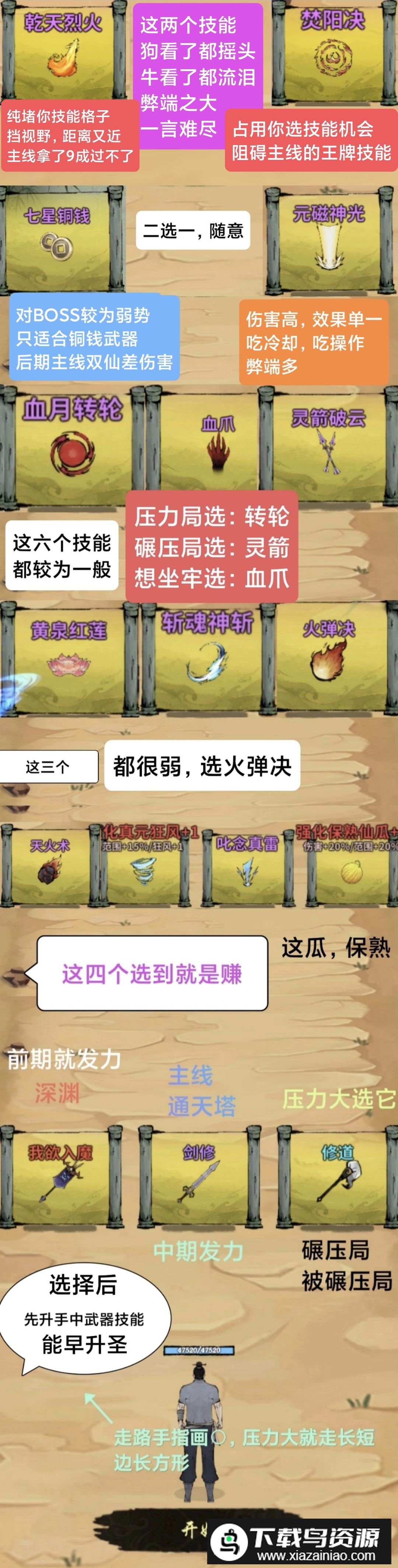 后期优先使用武器专属技能,辅以真雷、狂风、熟瓜;