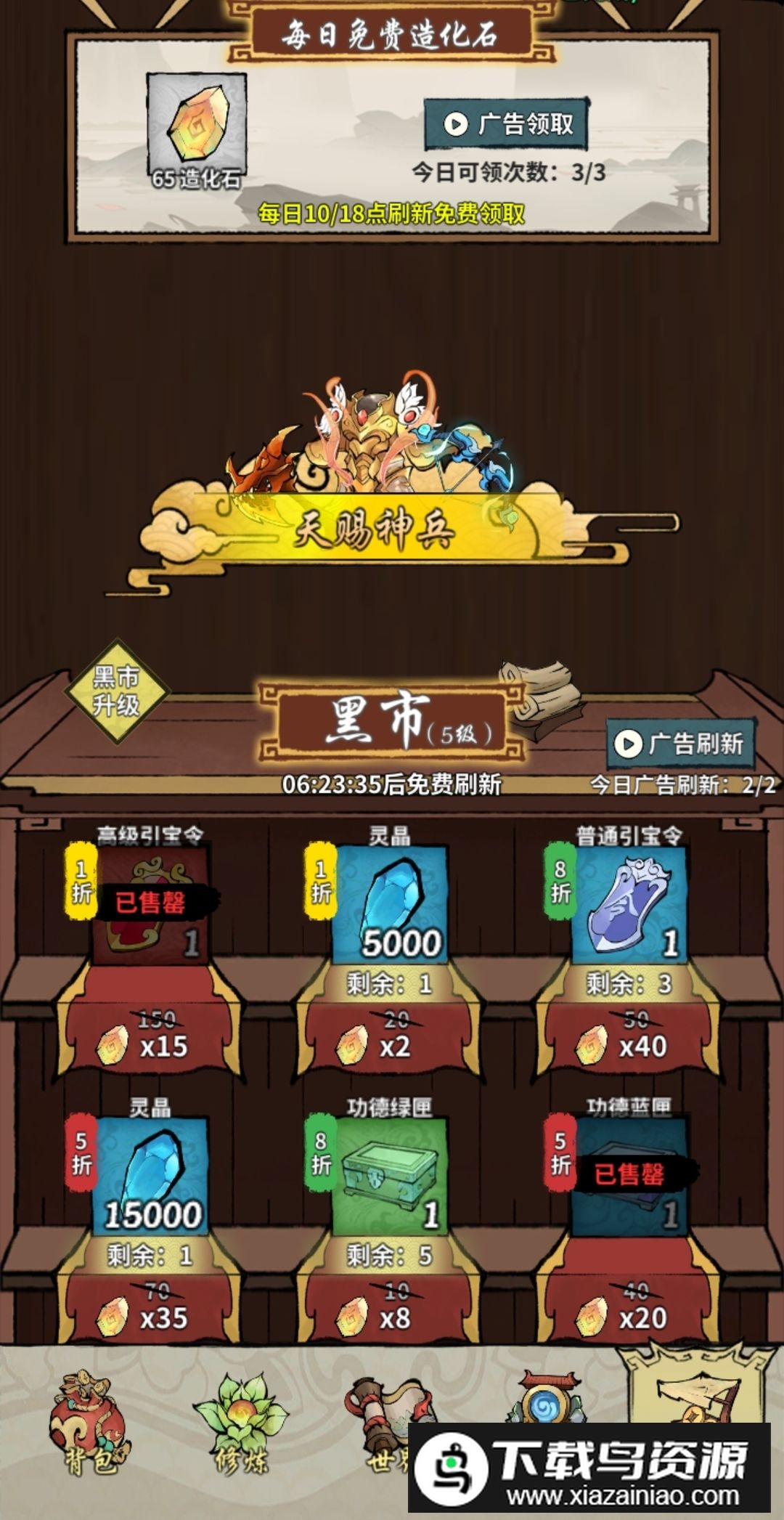坊市定期购买并升级灵力瓶,随天数与修为逐步提升设施等级。