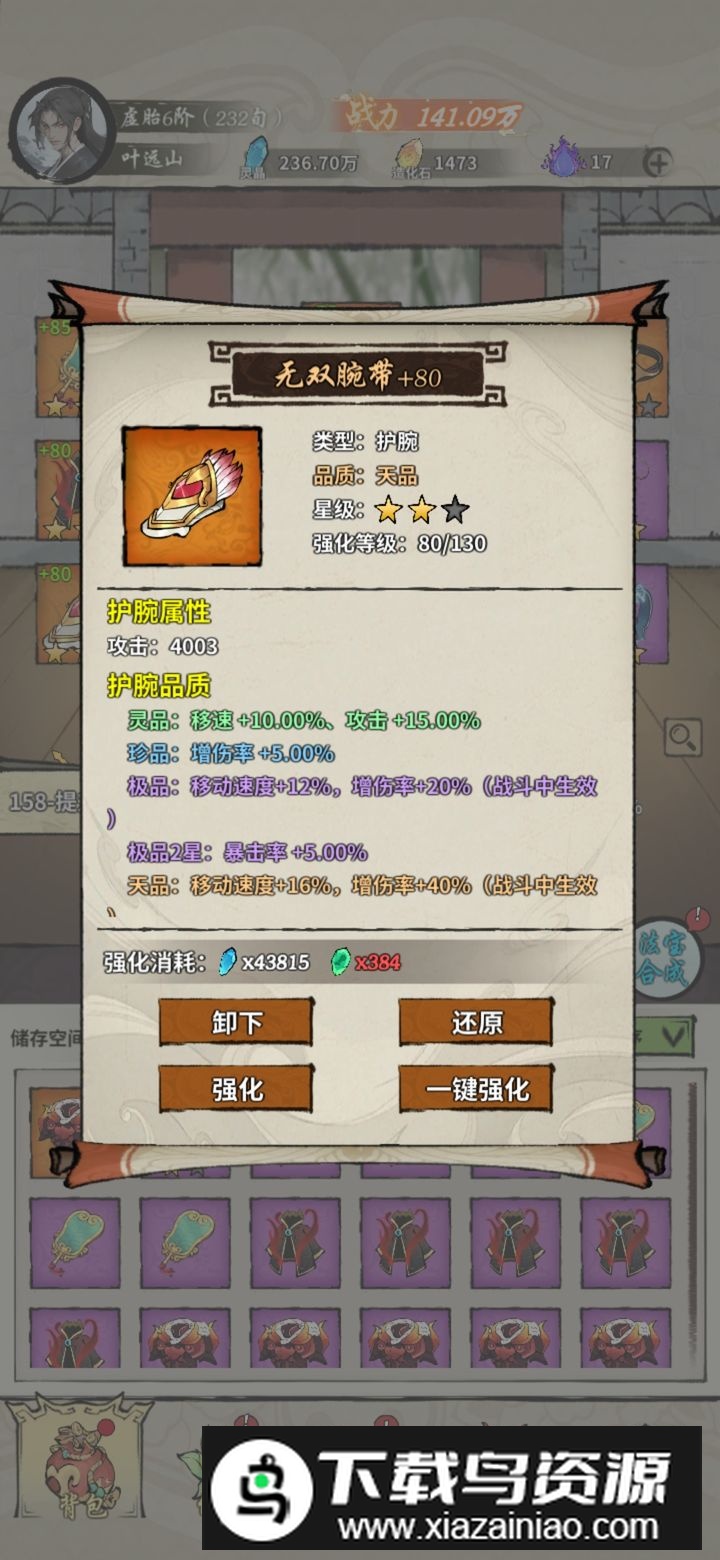 必须配备无双护腕提升伤害与移速,移动越快清理小怪效率越高;