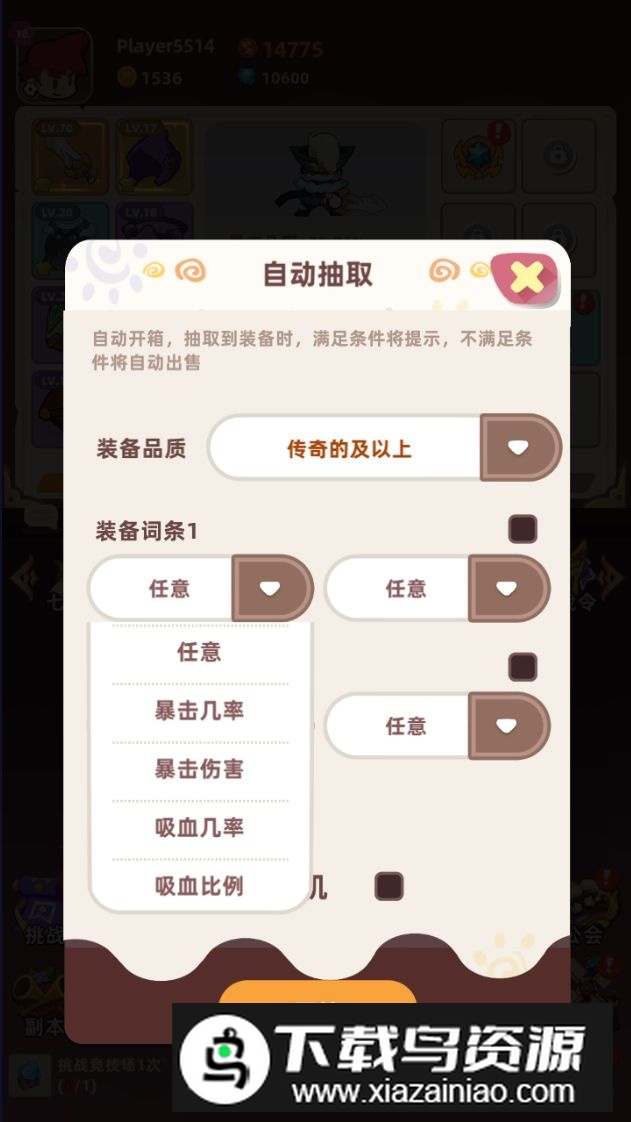 2. 可设置装备品质与词条要求,设定完成后即可开启自动抽取;