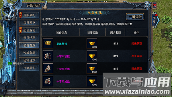 1、开服活动奖励丰厚,积极参与可快速提升实力;