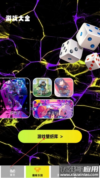 2、在【趣味乐园】界面中找到【游戏壁纸库】入口并点击进入。