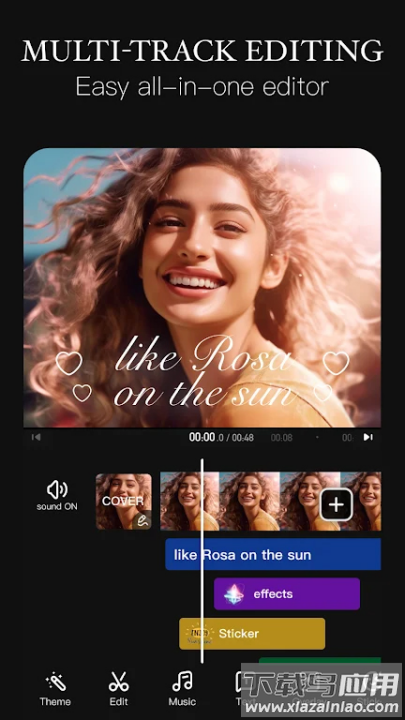 软件具备一键主题视频生成、多轨道编辑、高清输出和快速剪辑等功能,简化操作步骤,提高创作效率,用户可通过时间轴调整视频顺序,添加多条音轨并自由调节各项参数;