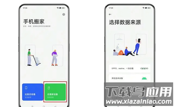1、在新手机打开手机搬家应用,选择“这是新设备”,根据旧手机类型生成专属二维码;